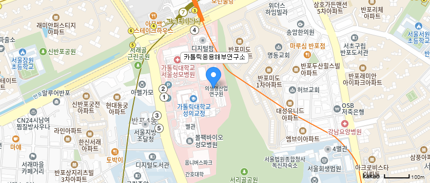 주소 : (06591) 서울시 서초구 반포대로 222 가톨릭대학교 의생명산업연구원 별관 2~5층